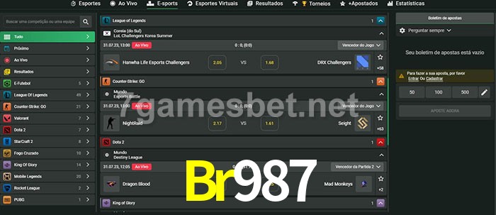 O Br987 oferece uma grande seleção de opções de apostas em e-sports com probabilidades competitivas